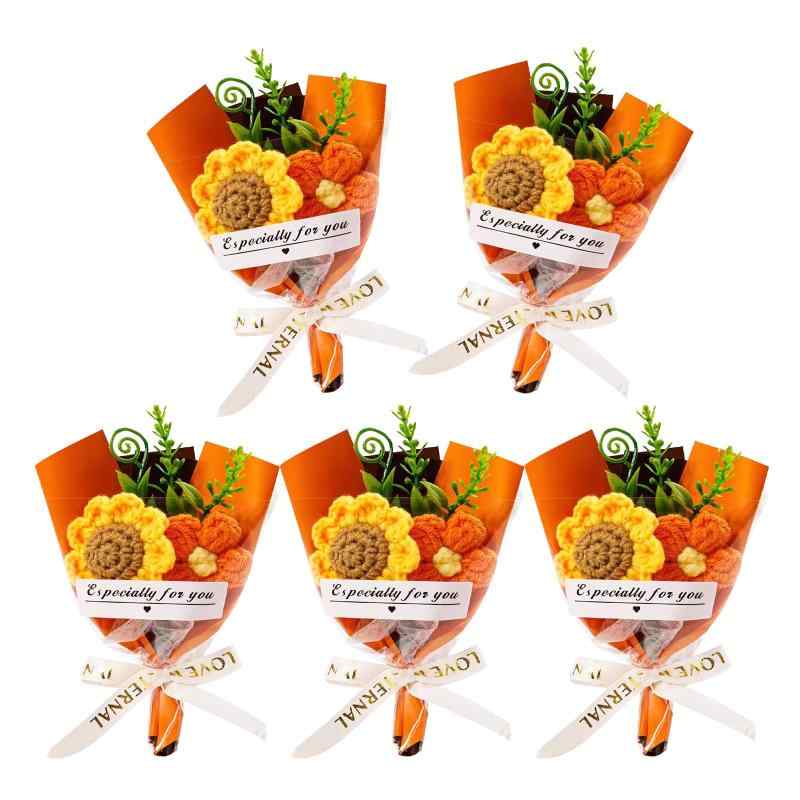 siawadeky ひまわり ニットフラワー 造花 かぎ針編み花束 5束セット 枯れない花 編み物 柔らかい おしゃれ 飾り 手作り フラワー 部屋 インテリア 装飾 母の日 誕生日 記念日 バレンタインデー